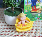 Игрушка на фото в руке - и столик, и малышка пупсик.