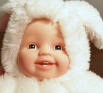 Кролики среди кукол-малышей от Anne Geddes есть самые разные: отличаются размером, глазами (рисованные или вставные), позами, личиками.