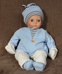 Этот славный малыш попал зачем-то на распродажу в My - shop, конечно я его сразу оттуда забрала:) А костюмчик отдельно покупался там же, это одежда от Paola Reina для пупсов 50 - 55 см, подошел идеально