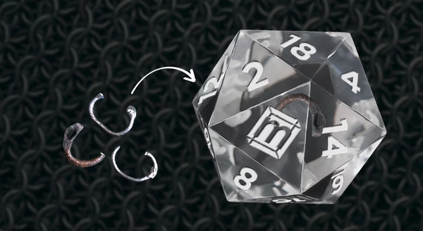 - В другой D20 встроен фрагмент кольчуги 15-го века.