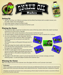 Snake Oil (Змеиное масло), ранее выпускавшееся Out of the Box Publishing, представляет одного игрока как "заказчика", в то время как остальные игроки - "продавцы", которые пытаются убедить потребителя купить именно их товар, а не какой-либо другой.
