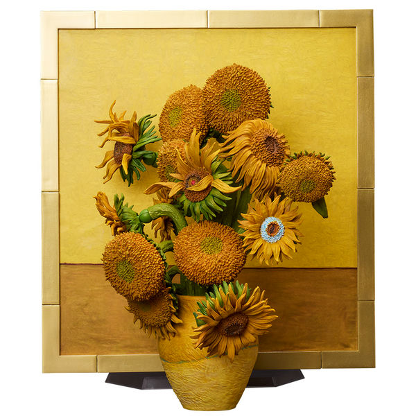 Эта смелая, но изящная трехмерная скульптура основана на одной из самых известных картин Ван Гога, написанных маслом, и каждый венчик может двигаться независимо друг от друга, создавая уникальное изображение "Подсолнухов".