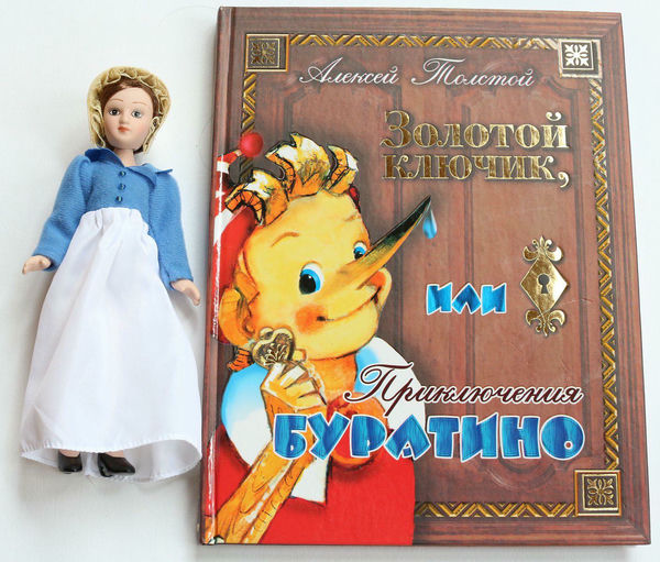 Алексей Толстой: Золотой ключик, или Приключения Буратино. Книга рядом с 18-см куклой.