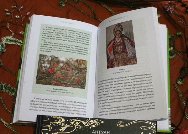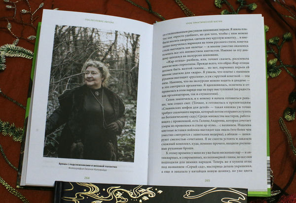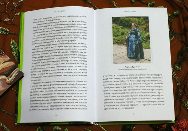 В самом начале - неожиданный сюрприз. Книга рассказывает о ботанической мифологии, а вступление - от исследователя моды и костюма. Но сразу понимаешь, почему. Также о костюме рассказывает сама Александра в конце книги. Эти наряды - часть зачарованного мира удивительного сада, часть истории, они так гармонично дополняют рассказы о мифологии растений, что по-другому и быть не может. Разве может быть другой экскурсовод у этого сада? Благодаря этим богатым образам экскурсии превращаются в волшебное действо, таинство, в котором посетители - участники процесса.