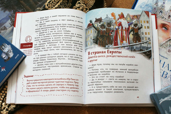 А еще в книге есть рассказ про появление Санта-Клауса - о том, откуда взялся этот знаменитый волшебник (чтобы узнать его историю, мы отправимся в Америку). Ну и, конечно, рассказывается здесь и о том, кто такие Дед Мороз и Снегурочка.
