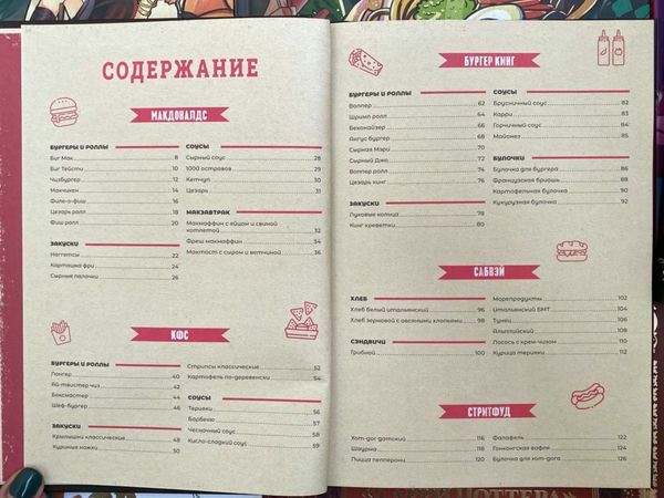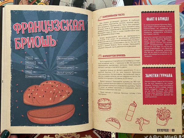 Примечательно, что помимо фирменных блюд в книгу вошли и рецепты базовых составляющих, например французской бриоши или итальянского хлеба для сэндвичей. На их основе можно создавать собственные кулинарные шедевры из вселенной фастфуда, смело экспериментируя с начинками.