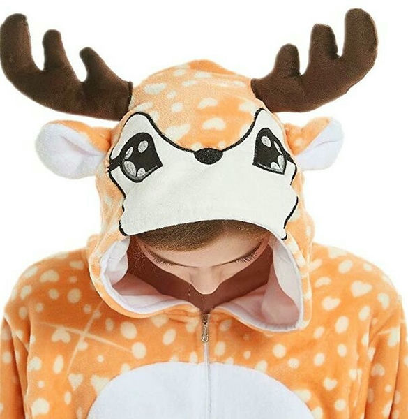 Кигуруми должны сидеть очень свободно, как мешок, так что вы можете надеть под них обычную одежду (они даже наденутся поверх вашей зимней куртки или строгого костюма!).