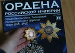 Эта интересная коллекция от издательства Аргументы и Факты выходила несколько лет назад, и в ней было представлено 22 ордена. Точнее, точной копии ордена, каждая из которых предлагалась вместе с журналом-описанием награды. Модели металлические, аккуратные, действительно точные. Также для коллекции был выпущен и кейс для хранения.