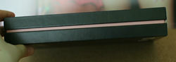 Коробка сделана из очень плотного черного картона. На нижней крышке есть розовая полоса, поэтому сбоку альбом выглядит еще интереснее (увидите на фото).