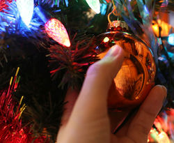 У нас - новая елка (высокая, но очень узкая и компактная). Поэтому игрушек на нее понадобилось больше, чем на прежнюю маленькую. Так что в этом году мы добавили несколько новинок - набор стеклянных шаров необычного теплого оранжевого цвета и несколько фигурных елочных игрушек, которые нам очень понравились. Это летающая тарелка НЛО, лев, улитка, грибочек и диск с изображением собачки.
