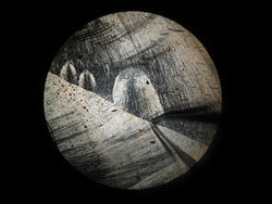 На петрографическом микроскопе исследуют шлифы - это тончайший срез породы (или минерала), приклеенный на стекло смолой - бальзамом - (толщина шлифа всего 0.03мм) которые можно сфотографировать (фото в предыдущей статье). Ещё один метод исследования пород - рудных минералов, срастаний (например, таких как магнетит и самородная медь) - минераграфический - делают полировку - отрезают ровно породу и шлифуют её до зеркального блеска - получается аншлиф, который смотрят уже на другом микроскопе - минераграфическом. Аншлиф можно исследовать и на электронном микроскопе - что было сделано для самородной меди из частной коллекции. И наконец, ещё один метод - минералогический - здесь смотрят шлихи - это материал, который намыло ручьями - наподобие того, что намывает море на пляжах. Всё это изучает геология - интереснейшая наука.