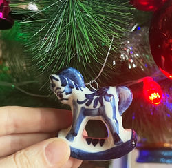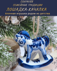 Елочная игрушка Лошадка Качалка Гжель, "Империя Гжели" (керамика)