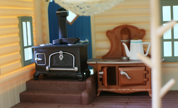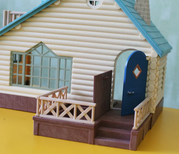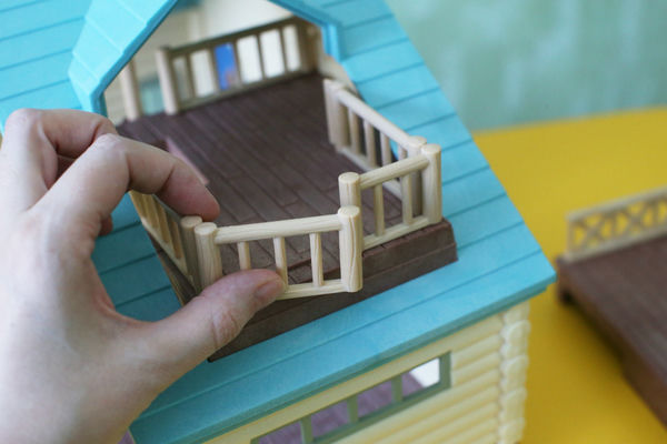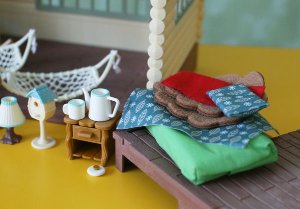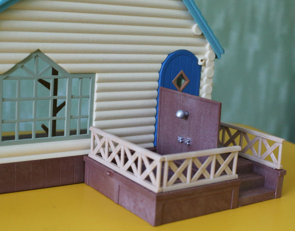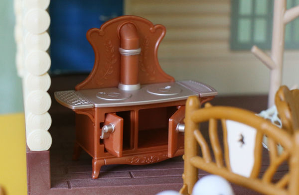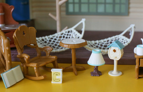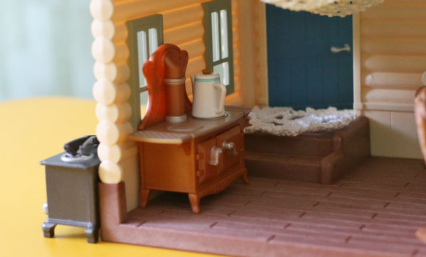 Бревенчатый домик у нас уже был в прошлой версии, с красной крышей (смотрите на фото в конце статьи). Но хитрые производители Сильвании выпустили его снова, добавив очень желанные фигурки - крошек Снежных синичек, а еще набор любимой бревенчатой мебели (также в перекрасе, как и домик). Поскольку была возможность купить новый дом по относительно удачной цене, устоять было сложно, так что теперь он у нас есть.
