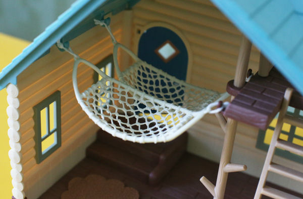 Гамаки, кресло-качала, книги, столик, лампа и скворечник: