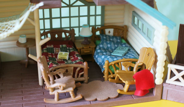 Добавим еще одну кровать (предыдущая версия бревенчатой мебели) - вот так выглядит домик с дополнениями: