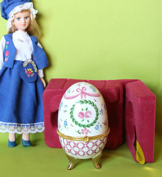 Коллекция фарфоровых яиц, яйцо (оно достаточно крупное) на фото рядом с 18-см куклой.