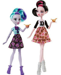Draculaura и Twyla Boogeyman приглашают нас присоединиться к ним во время обеда в школьной столовой! Игровой набор с Фрэнки Штейн: School Spirit, кукла и набор для ланча!