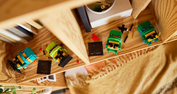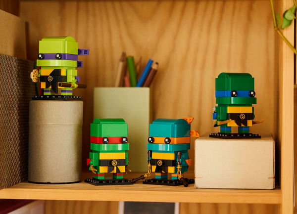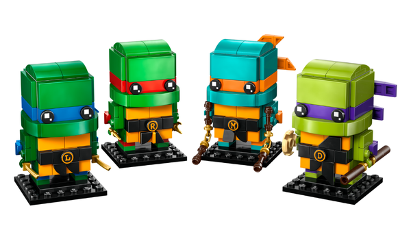 Герои вернулись в форме LEGO, с фигурками Леонардо, Рафаэля, Донателло и Микеланджело, в комплекте с их фирменным оружием и даже целой пиццей для Микеланджело.