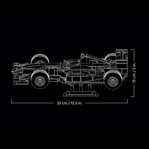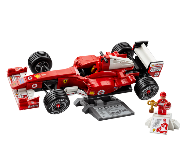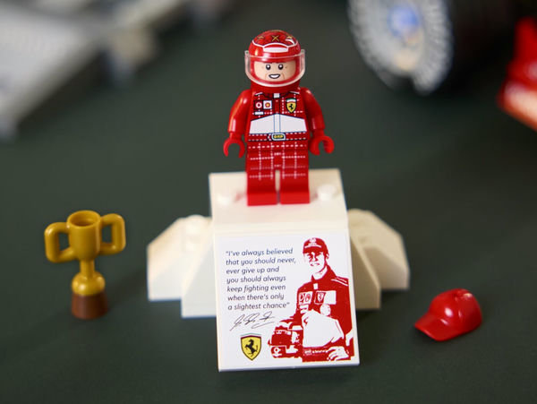 Эта модель из 735 деталей оснащена рифлеными шинами Bridgestone, двигателем V10 и минифигуркой Михаэля Шумахера с табличкой, на которой изображена вдохновляющая цитата.