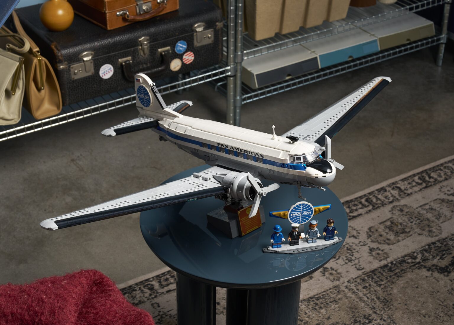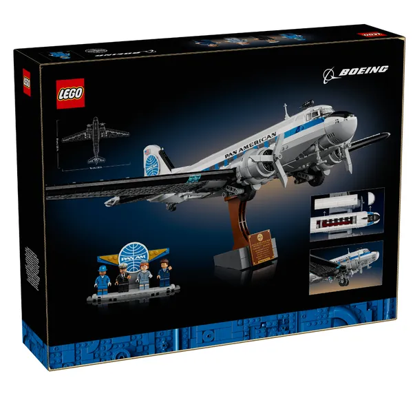 Эта модель, состоящая из 1903 деталей, позволяет создать и продемонстрировать модель, которая отдает дань уважения узнаваемому силуэту DC-3, а также включает в себя четыре минифигурки - пилота, казначея, стюардессы и бортпроводника, одетых в историческую униформу PAN AM.