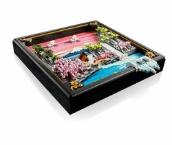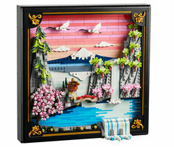 Эта модель совершенно потрясающая, продуманная, она сочетает великолепные весенние цвета в трехмерном произведении искусства, выполненном из деталей конструктора. Благодаря перспективе вы можете увидеть очень важные японские символы - гору Фудзи, чайный домик, мост, водопад, летящих японских журавлей, цветущую сакуру, клен "Санго-Каку" и японские зонтичные сосны, размещенные в теневой рамке, которая создает глубину.