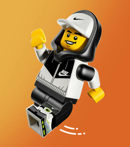 В комплект входит одна минифигурка с довольно эффектными деталями, включая куртку-ветровку Nike, а также кроссовки Air Max 95s с принтом на ногах (вы можете выбрать пол персонажа), а еще толстовку с капюшоном и кепку с надписью Nike swoosh.