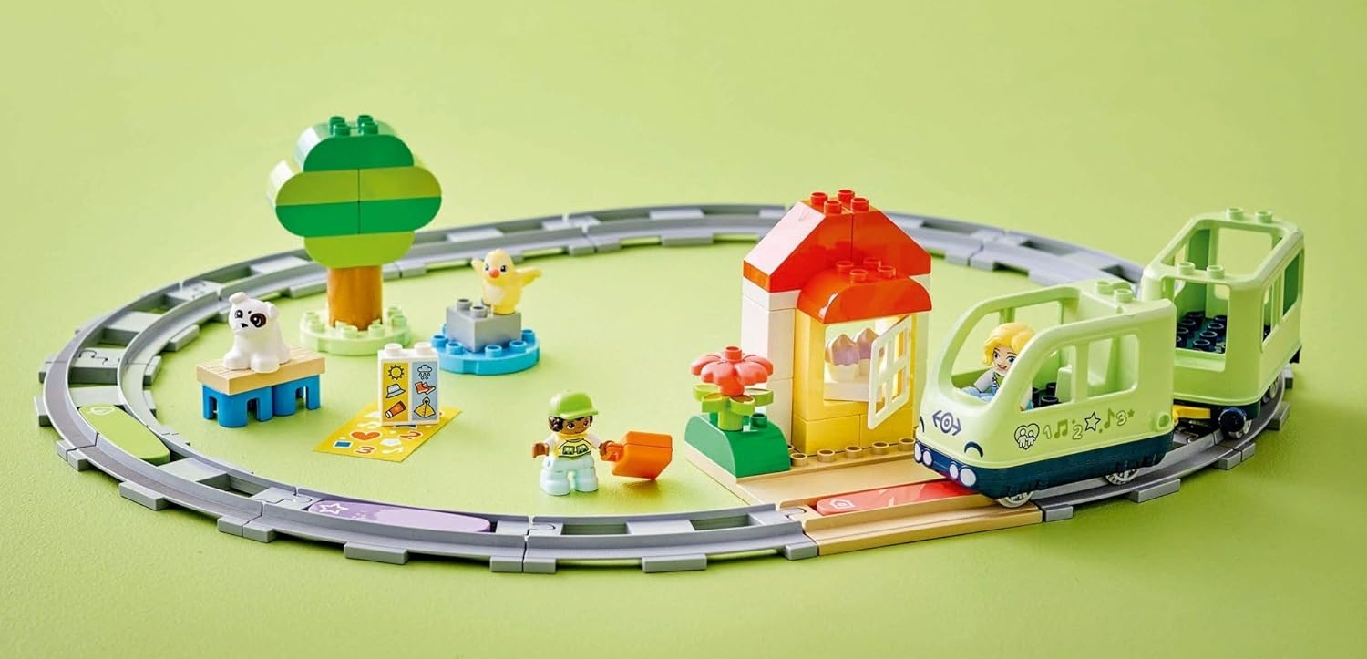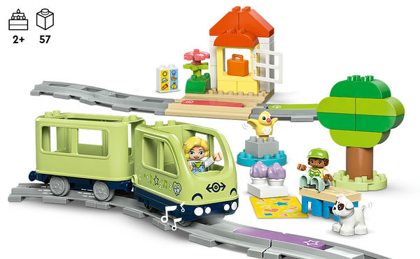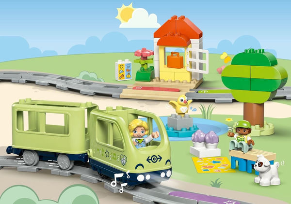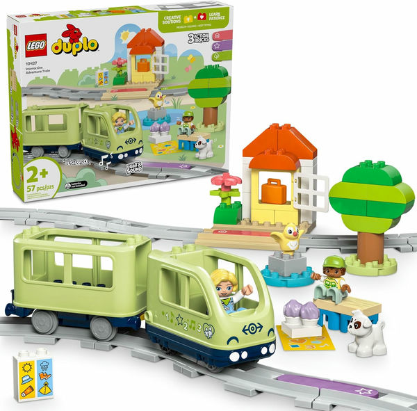 Интерактивный поезд-приключение LEGO DUPLO вдохновляет на практическую и творческую игру. Дети в возрасте от 2 лет и старше могут присоединиться к веселью и построить свой собственный поезд, прокладывая рельсы. В этот набор входят четыре фигурки LEGO DUPLO, поезд Push&Go, 14 деталей рельсового пути, три объекта назначения (небольшая станция, парк или пляж), три экшн-детали и другие аксессуары.