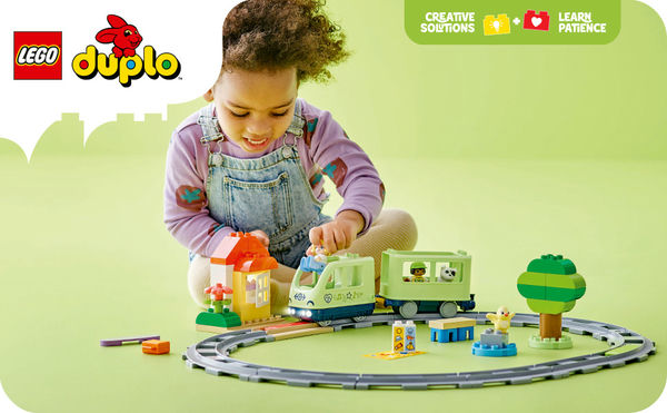 Игровой набор "Поезд", в который входят фигурки LEGO DUPLO, настраиваемые железнодорожные пути и многое другое, порадует малышей, потому что предлагает много игровых возможностей. Совместим с другими наборами поездов LEGO DUPLO.