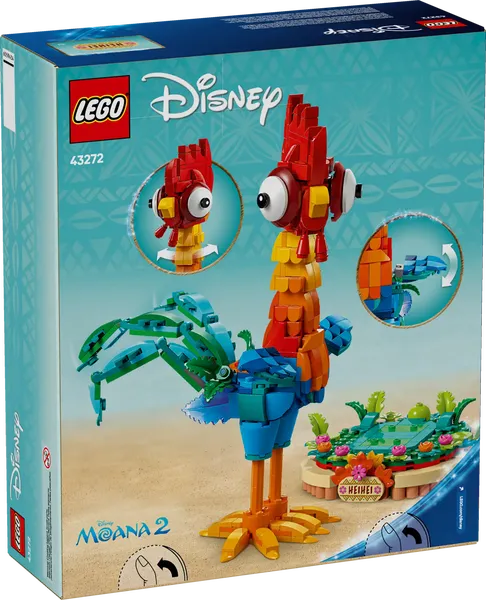 Конструктор LEGO Heihei создан по мотивам мультфильма Disney "Моана 2" (2024), состоит из 566 деталей. У фигурки вращающаяся голова, подвижные крылья и хвостовые перья.