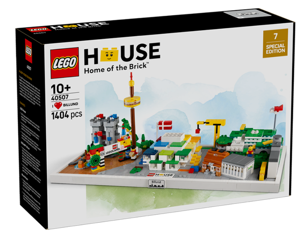 40507 I ❤️ Billund позволяет вам построить некоторые из самых запоминающихся достопримечательностей Биллунда, состоит из четырех модульных секций: дом LEGO, кампус LEGO (глобальная штаб-квартира LEGO), Леголенд Биллунд, дом Оле Кирка и дом LEGO System House.
