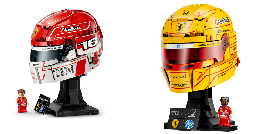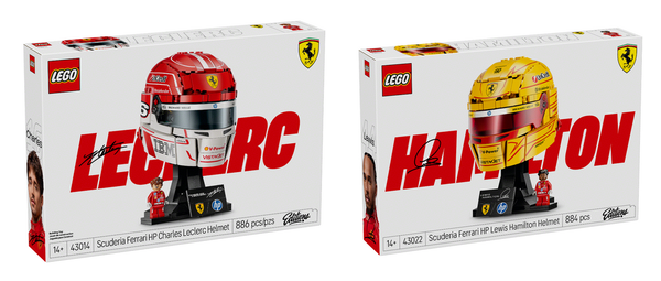 Компания LEGO официально представила две новые модели шлемов Формулы-1 с пилотами Scuderia Ferrari HP: это набор 43014 Scuderia Ferrari HP Charles Leclerc Helmet и 43022 Scuderia Ferrari HP Lewis Hamilton Helmet. Они появятся в продаже 1 мая 2026 года.