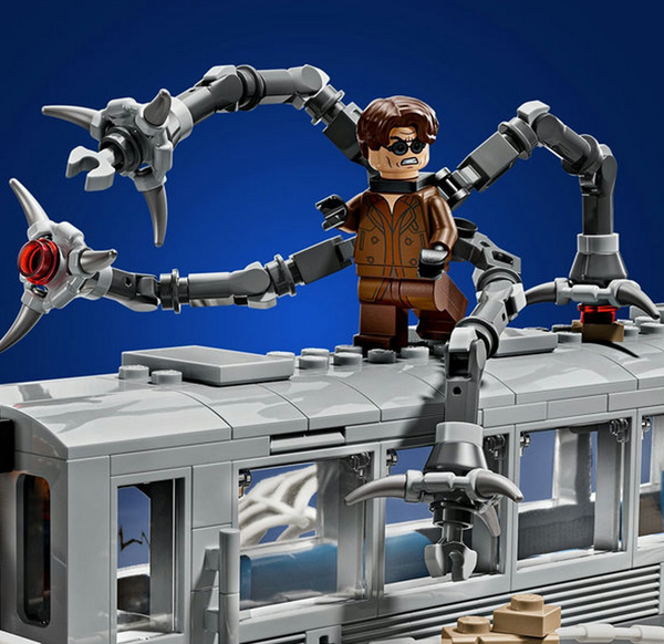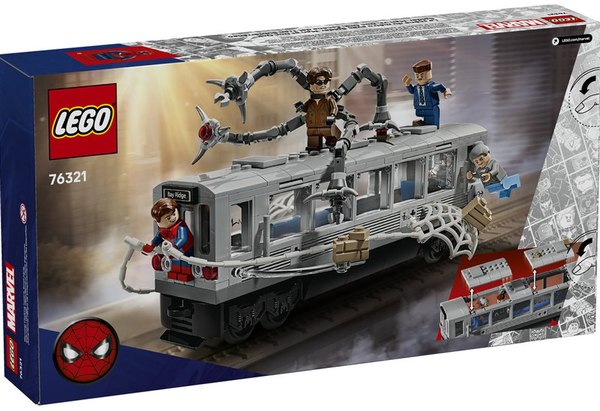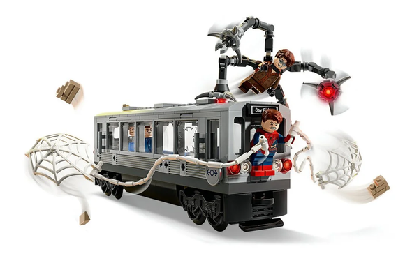 В этом детализированном наборе представлены минифигурки Человека-паука, Дока Ока, Дж. Джона Джеймсона и тети Мэй, которые создают условия для напряженных сражений: механическое щупальце Дока Ока атакует поезд, а Человек-паук пускает в ход большую паутину, чтобы спасти ситуацию.