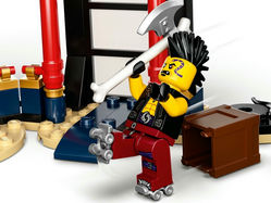 В наборе 7 минифигурок (они - настоящая изюминка этого набора): ниндзя Кай, Джей и Ллойд, мастера стихий Болобо, Джейкоб и Гравис, а также злодей Айзор. Оружие, которое вы получаете с набором: ситар Джейкоба, топор Айзора, нунчаки Джея, нефритовые клинки, посох Болобо.