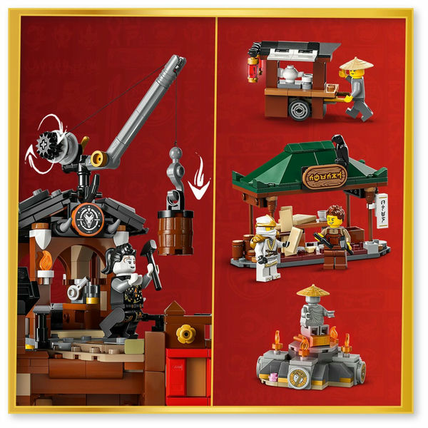 Этот обширный комплекс не совсем соответствует серии LEGO Ninjago City, имеет полностью закрытые стены, которые можно открывать, идет со множеством магазинов, зданий и деталей, которые порадуют поклонников Ninjago.