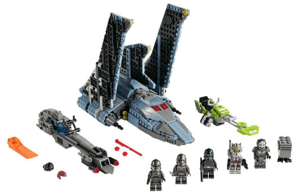 Шаттл Bad Batch Attack (LEGO 75314) - это набор из 969 деталей со множеством функций, как в шоу. В комплекте идут минифигурки всей команды: Tech, Echo, Hunter, Wrecker и Crosshair (в новом полностью черном костюме Империи).