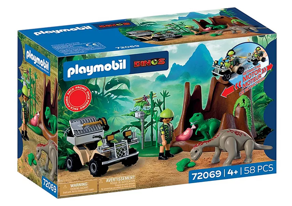 На квадроцикле, с исследовательским оборудованием, наш герой путешествует по местности динозавров и внезапно сталкивается с чем-то невероятным: детеныш тираннозавра и детеныш брахиозавра - мирно спящие бок о бок в выдолбленном пне дерева! Он быстро приступает к работе: документируя звуки, он кормит малышей мясом и растениями. Благодаря тяговому двигателю квадроцикл готов к работе в любое время.