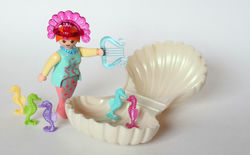 Одна из интересных серий наборов Playmobil - морская, с феями, морскими коньками, и даже морским царём. В комплект входят фея с лирой, морские коньки и большая белая раковина.