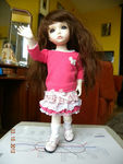 У Иплхаус очень красивая и качественная кукольная одежда. Этот костюм называется "Цветок вишни": вельветовая юбочка, блузка без рукавов с кружевами и "жемчужными" пуговичками и трикотажная кофточка. Цветочки на воротнике блузки и кофточки - из атласных ленточек.