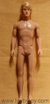 Волосы не пластиковые, настоящие, лицо приятное. Ноги и руки у него в локтях и коленях не сгибаются, двигаются только вперёд-назад, как у простых кукол. Голова поворачивается. Как устроен - на фото всё видно. Глаза голубые.