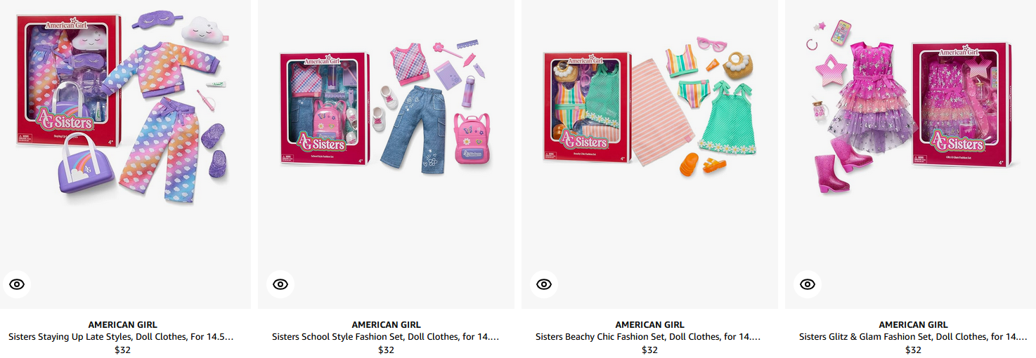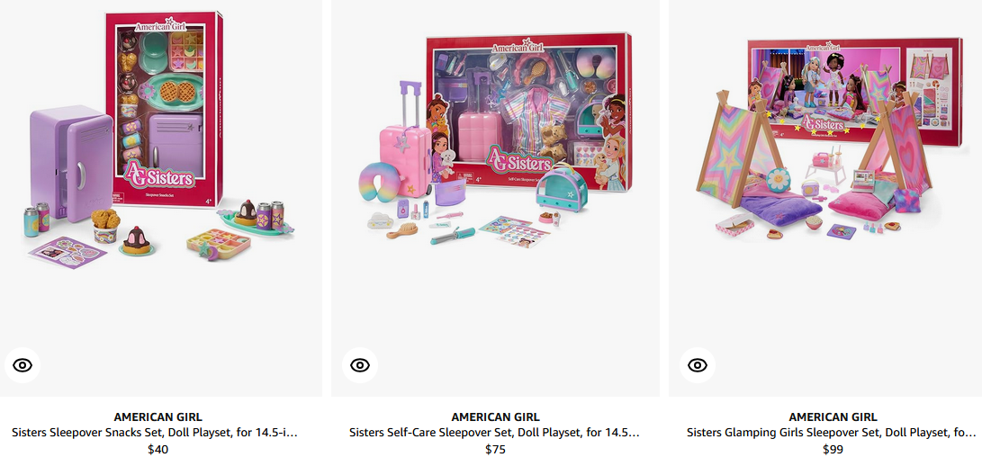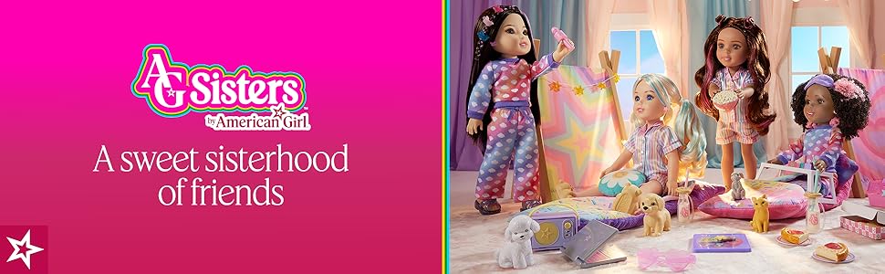 Коллекция AG Sisters также включает в себя дополнительные аксессуары и модные наборы, такие как набор для перекуса с ночевкой, набор для самостоятельной подготовки к ночевке, набор для позднего пробуждения и набор для ночевки Glamping Girls, чтобы дети могли спланировать и украсить свою собственную кукольную вечеринку с ночевкой.