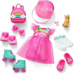 - Леа дарит свой собственный набор роликовых коньков, шлем и радужный рюкзак.