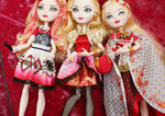 Apple White в трёх вариантах исполнения, Ever After High, Mattel. Золотисто-бело-красные принцессы.