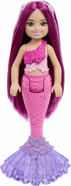 помощью этой очаровательной коллекции кукол Барби Челси! 15-сантиметровые куклы с русальими хвостами одеты в яркие, красочные наряды с милыми деталями, которые пробуждают волшебное воображение.