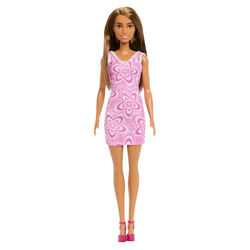 Знакомьтесь с новыми бюджетными игровыми куклами Barbie в одинаковых розовых платьях (все платья - с разными розовыми узорами).
