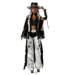 металлические детали, много бахромы, а еще - эффектный аксессуар! У этой куклы просто невероятное