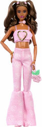 Модная кукла Barbie Deluxe Style №12 в розовом джинсовом укороченном топе и расклешенных джинсах: