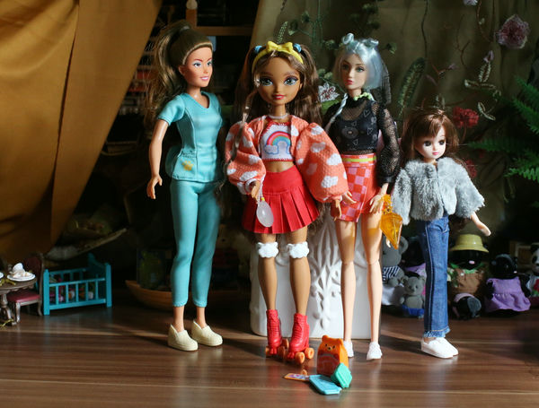 Барби Dream Besties Тереза на роликах рядом с другими куклами (Dream Ella, DEFA Lucy, Licca):