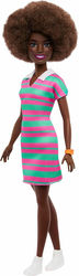 Кукла Barbie Fashionistas №247 - темнокожая, в розово-зеленом полосатом платье с воротником: