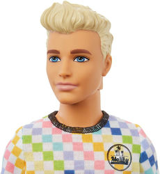 Barbie Fashionistas Ken (#174 ?) - футболка с цветными квадратиками и надписью Malibu, светлые шорты, голубые кеды-слипоны: