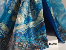Вдохновленная шедевром Винсента ван Гога "Звездная ночь", кукла превращает одну из самых культовых картин мира в модную вещь от кутюр. На кукле изысканное вечернее платье насыщенных синих и бирюзовых оттенков, повторяющих мазки кисти и ритм "Ночного неба" Ван Гога. Ткань передает движение и эмоции картины, в то время как ее скульптурные светлые волосы, подчеркнутые мерцающими голубыми тонами, отражают светящуюся энергию картины.